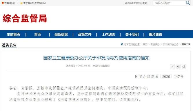 • 日前,國家衛(wèi)生健康委辦公廳發(fā)布了引發(fā)消毒劑使用指南的通知。 各省、自治區(qū)、直轄市及新疆生產(chǎn)建設(shè)兵團(tuán)衛(wèi)生健康委,中國疾病預(yù)防控制中心:   為科學(xué)指導(dǎo)公眾正確使用消毒劑,充分發(fā)揮消毒劑在新冠...