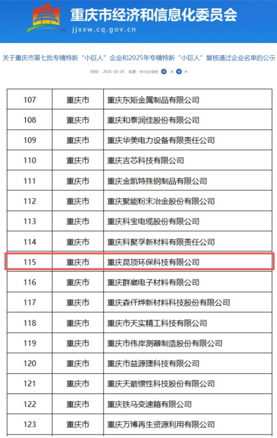 喜訊!近日,國(guó)家工業(yè)和信息化部專精特新“小巨人”企業(yè)復(fù)核結(jié)果正式揭曉——昆頂環(huán)保再獲國(guó)家工信部專精特新“小巨人”復(fù)核認(rèn)證,蟬聯(lián)中小企業(yè)最高榮譽(yù),穩(wěn)居環(huán)??萍碱I(lǐng)域“領(lǐng)頭雁”。