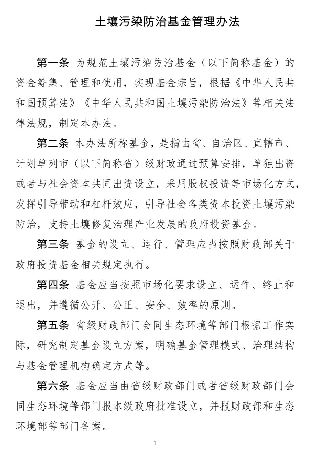 為規(guī)范土壤污染防治基金的資金籌集、管理和使用,實(shí)現(xiàn)基金宗旨,根據(jù)《中華人民共和國(guó)預(yù)算法》《中華人民共和國(guó)土壤污染防治法》等相關(guān)法律法規(guī),我們制定了《土壤污染防治基金管理辦法》。現(xiàn)予印發(fā),請(qǐng)遵照?qǐng)?zhí)行。